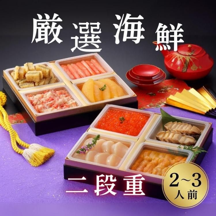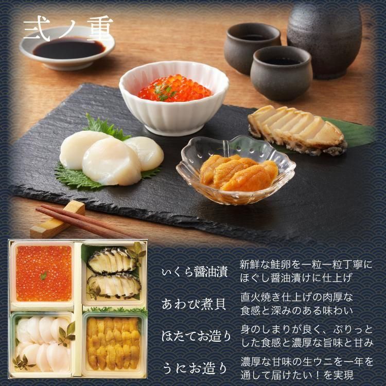 早割8%OFF【藤崎百貨店で人気】漁師めし 海鮮おせち 二段重〈来福〉 8種の厳選海鮮詰合せ アワビ・ウニ・カニ【海鮮プラス ギフトおせち】