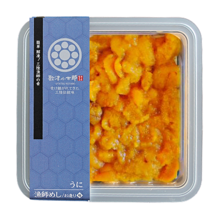 口の中でとろける甘みと磯の風味がたまらない濃厚なうに。ごはんはもちろん、お酒のお供にもぴったりな歌津小太郎自信作の逸品です。数に限りがありますので、予告なく売り切れる場合がございます。予めご了承ください。