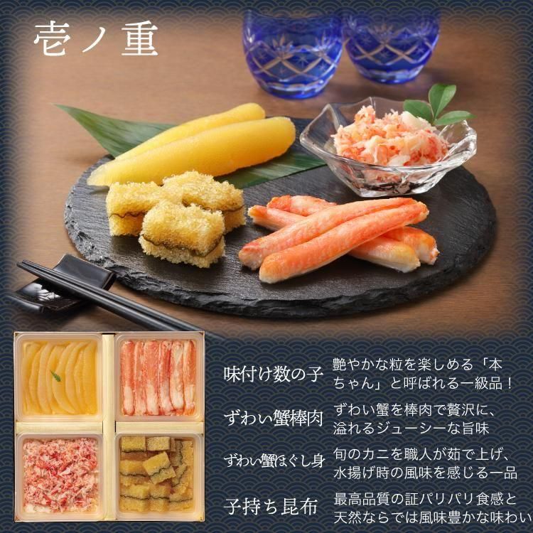早割8%OFF【藤崎百貨店で人気】漁師めし 海鮮おせち 二段重〈かに数の子酒の肴祝膳〉 8種の厳選海鮮詰合せ お酒に合う【海鮮プラス ギフトおせち】