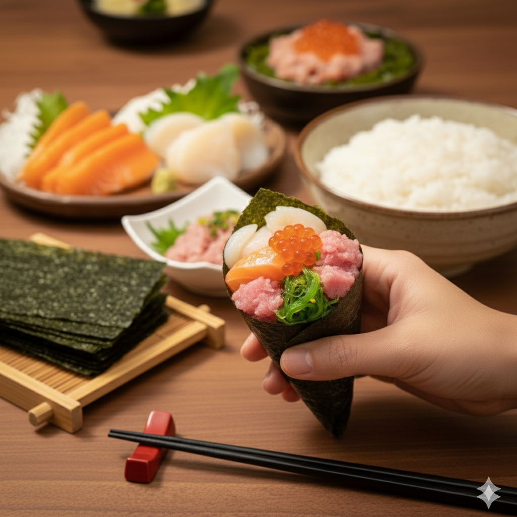 歌津小太郎自慢の海の幸を、お好きな分だけ、くるっと手巻きに。